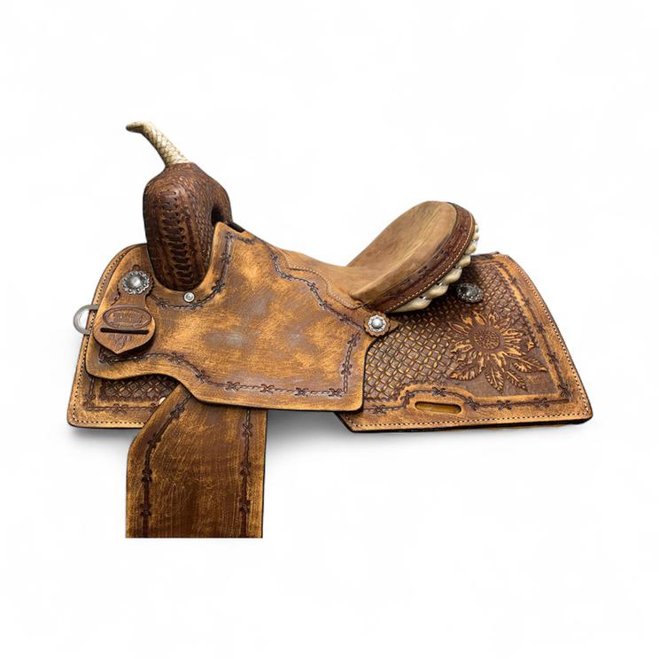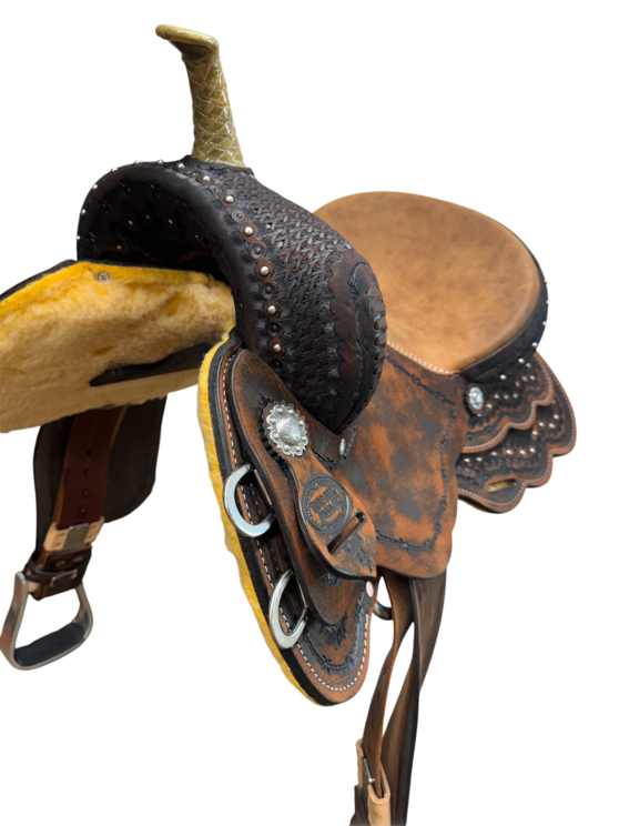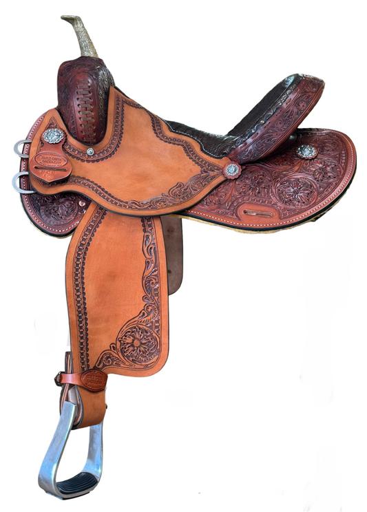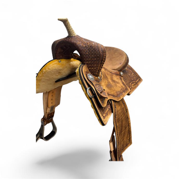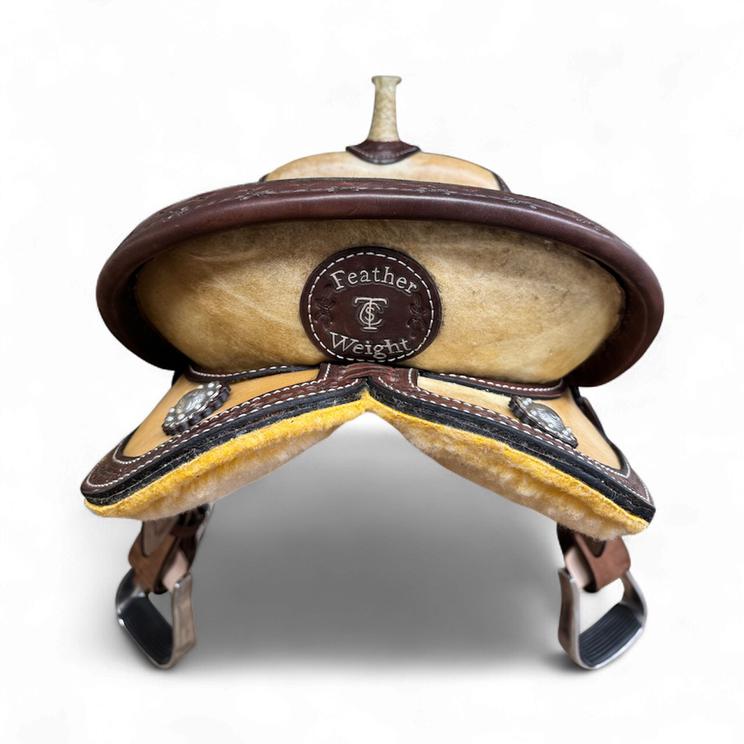 The actual weight of this saddle is 19 and a half pounds without stirrups.